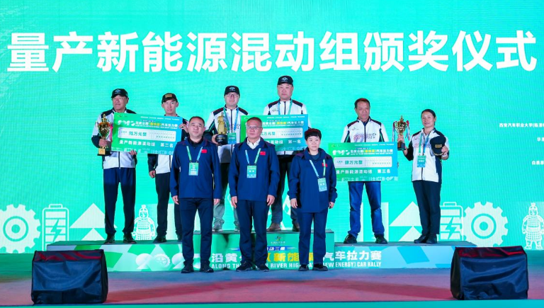 經(jīng)過激烈角逐,比賽成績成功決出。翁春明、紀婀可獲得全場總冠軍。車手侯鵬飛、領航員吳瓊獲得量產(chǎn)純電組冠軍;車手任少波、領航員安新鋒獲得量產(chǎn)純電組四驅(qū)能耗組冠軍;車手韓鵬、領航員金亮獲得量產(chǎn)純電組二驅(qū)能耗組冠軍;車手張長林、領航員盧偉杰獲得量產(chǎn)新能源混動組冠軍;河南隊奪得沿黃各省區(qū)代表隊燃油車組冠軍;陜西省隊奪得沿黃各省區(qū)代表隊新能源車組冠軍。
