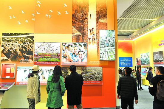 記者在現(xiàn)場(chǎng)看到,展覽通過運(yùn)用歷史圖片、文字視頻、實(shí)物場(chǎng)景、沙盤模型、互動(dòng)體驗(yàn)等多種手段和元素,突出展示了我國(guó)改革開放40年來發(fā)生的偉大變革。
