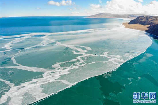 色林錯湖面上的浮冰(12月15日無人機拍攝)。新華社發(fā)(孫非 攝)