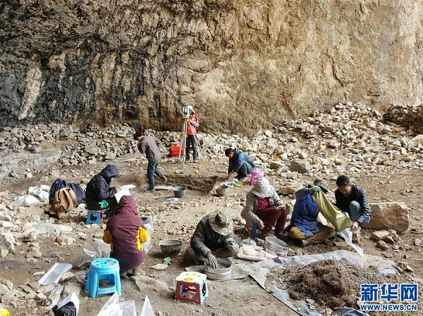 聯(lián)合考古隊(duì)隊(duì)員在梅龍達(dá)普洞穴遺址開展科學(xué)考古發(fā)掘工作(2018年8月16日攝)。新華社發(fā)(西藏自治區(qū)文物保護(hù)研究所供圖)