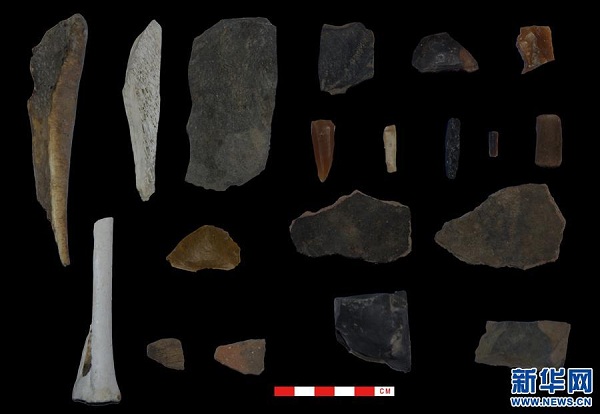 梅龍達(dá)普洞穴遺址發(fā)掘出土的部分遺物(2018年8月24日攝)。新華社發(fā)(西藏自治區(qū)文物保護(hù)研究所供圖)