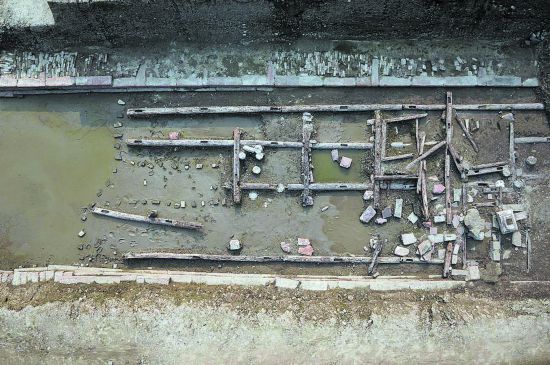 2016年 考古人員發(fā)現(xiàn)明代摩訶池的西北角。
