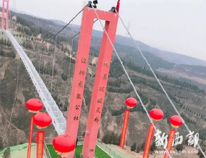 ▲西北地區(qū)跨度最大的觀景玻璃天橋在涇陽縣龍泉公社落成向公眾開放。新西部網(wǎng) 王順利 攝影
