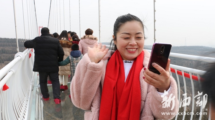 慕名而來的外地游客、當(dāng)?shù)厝罕娕c參加啟動(dòng)儀式的來賓現(xiàn)場(chǎng)行走玻璃天橋,親身體驗(yàn)領(lǐng)略不一樣的感覺……