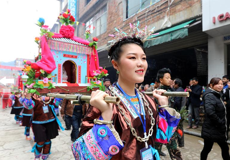 人民網(wǎng)融水3月10日電 3月8日,廣西融水苗族自治縣洞頭鄉(xiāng)迎來一年一度的特色節(jié)慶“二月二”花炮節(jié)。該節(jié)是當(dāng)?shù)刈钍⒋蟮膫鹘y(tǒng)節(jié)日,來自桂黔兩省交界附近村屯2萬多名群眾和游客一起舉行慶?;顒?。搶花炮、侗族千人多耶舞、蘆笙踩堂舞、打同年、舞獅等系列特色民俗活動精彩紛呈。