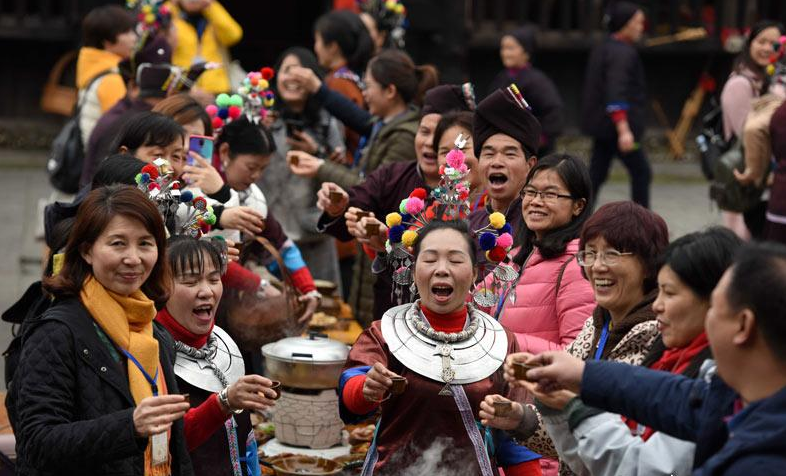 人民網(wǎng)三江3月8日電 3月8日,廣西三江侗族自治縣林溪鎮(zhèn)冠小侗寨舉辦“傾情禮贊新中國,巾幗奮進(jìn)新時代”紀(jì)念“三八”國際婦女節(jié)活動,侗族婦女以攔路迎賓、蘆笙踩堂、紡紗表演、多耶、百家宴等特色濃郁的節(jié)目與來客共慶佳節(jié)。近年來,三江縣突出民俗、民族節(jié)慶主題,精心打造旅游民族節(jié)慶品牌,把民族文化的“軟實力”變?yōu)閹影傩彰撠氈赂坏摹昂藙恿Α保?018年該縣共接待游客901.21萬人次,旅游總消費(fèi)72.5億元,同比分別增長14%和31%。(龐革平、龔普康)