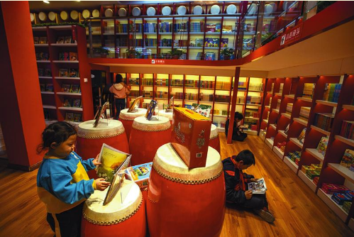 延安市安塞區(qū)新華書店內(nèi)充滿腰鼓元素。