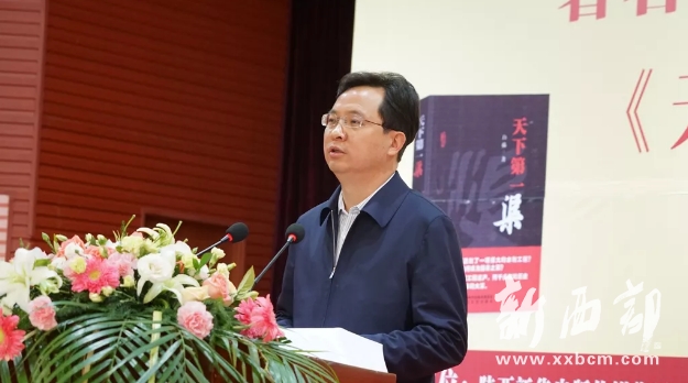涇陽縣委書記張渭說,《天下第一渠》這部40萬字的專著,以歷朝歷代的流變演進為主線,縱向發(fā)掘追溯了鄭國渠的風云歷史,橫向鋪敘了關(guān)中大地農(nóng)耕文明的傳承樣態(tài)。流淌了兩千多年的鄭國渠,于2016年成功“申遺”,躋身“世界灌溉工程遺產(chǎn)”名錄,成為八百里秦川的一張“金色名片”?!短煜碌谝磺繁貙閺V大讀者提供最好的閱讀體驗、最真實的歷史原態(tài);也必將進一步堅定涇陽、咸陽和陜西的文化自信。希望廣大文藝工作者,進一步發(fā)掘涇陽的文化資源,傳承好、弘揚好涇陽的歷史文化,唱響“崇德包容尚法創(chuàng)新”的咸陽精神。