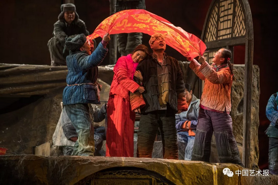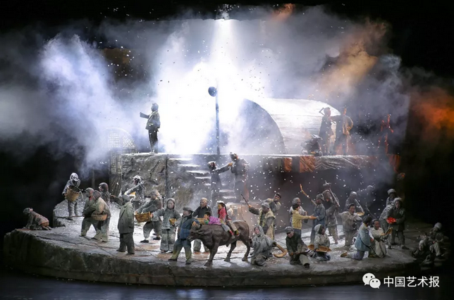 大輾盤在轉(zhuǎn)動著。父老鄉(xiāng)親在重軛下奮爭拼搏,在重軛下日新又新,這正是我們民族的偉力,也正是這部戲要宣敘的重要題旨。