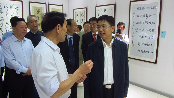 王朝暉陪同吳延旗(前右一)參觀展覽。