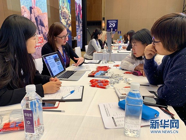 11月26日, 在西安舉行的英國旅游局旅游推介會上,與會旅游企業(yè)進(jìn)行商務(wù)會談。新華網(wǎng) 楊喜龍攝
