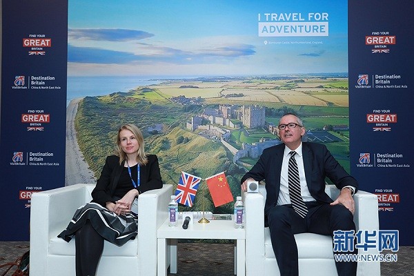 英國旅游局北亞區(qū)總監(jiān)艾漫威、英國簽證及移民局亞太區(qū)總監(jiān)戴夏婷接受媒體采訪。新華網(wǎng)發(fā)