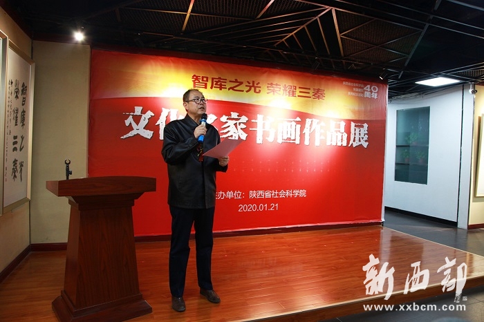 司曉宏在致辭中說(shuō),此次畫(huà)展是陜西省社會(huì)科學(xué)院紀(jì)念恢復(fù)建院四十周年系列活動(dòng)的重要成果,近百位陜西文化界知名作家、畫(huà)家、書(shū)法家熱心參與我院舉辦的“智庫(kù)之光,榮耀三秦”文化名家書(shū)畫(huà)筆會(huì)和書(shū)畫(huà)作品征集活動(dòng),提供了上百幅精品力作,其中包括鐘明善、王西京、雷珍民、陳建貢、趙振川、郭線廬、李成海、蔡小楓、甘暉、肖云儒、高建群等文化名家的作品。多位文化名家接還被陜西省社會(huì)科學(xué)院聘請(qǐng)為特聘研究員。