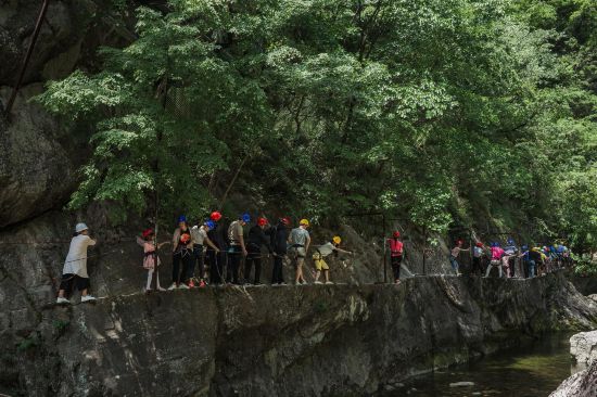 楊傳紅所在的終南山寨景區(qū)是啟動建設(shè)于2016年的運動休閑特色小鎮(zhèn),緊鄰牛背梁國家級自然保護區(qū),是柞水縣做大做強全域旅游嘗試過程中的一個縮影。依托牛背梁良好的生態(tài)環(huán)境,終南山寨景區(qū)主打優(yōu)質(zhì)生態(tài)和底蘊厚重的陜南文化兩張?zhí)厣?,集戶外運動、健身養(yǎng)生于一體?!斑@里有民俗文化村,峽谷運動樂園等板塊,靠生態(tài)吸引游客,靠優(yōu)質(zhì)的旅游體驗和豐富的文化性留住游客。依托旅游產(chǎn)業(yè)帶動村民致富?!苯K南山寨景區(qū)副總經(jīng)理霍國博告訴記者。
