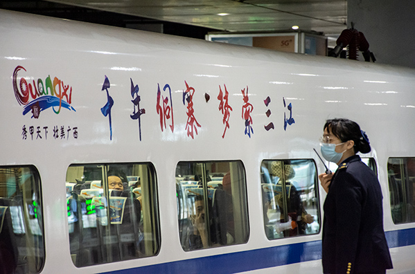 “幸福旅程·詩美三江”動車專列從南寧東開往三江。伍藝濤攝