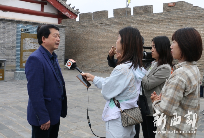 ▲陜西省殘疾人聯(lián)合會宣文部主任王成(左一)接受榆林傳媒中心記者采訪