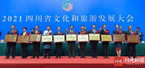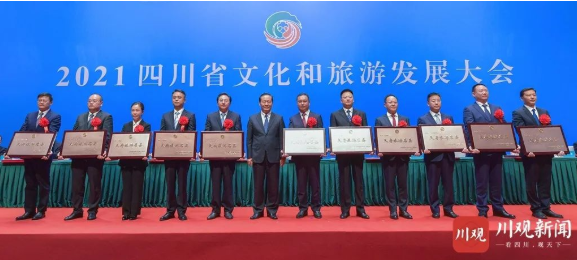 會上,省委常委、宣傳部部長甘霖宣讀第三批天府旅游名縣、首批天府旅游名牌(名鎮(zhèn)、名村、名宿、名導(dǎo)、名品)命名文件,彭清華逐一向獲得命名的天府旅游名縣授牌,彭清華、黃強、鄧小剛等向首批天府旅游名牌獲得者代表授牌。九寨溝縣、省文物考古研究院、華強方特集團、交通運輸廳負責(zé)同志作交流發(fā)言。會議宣布南充市為2022四川省文化和旅游發(fā)展大會承辦地并授旗。