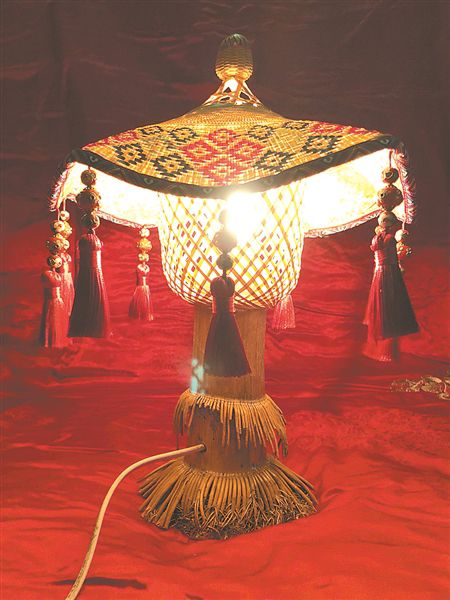 竹編《毛南族花竹帽臺(tái)燈》。譚汝/制作