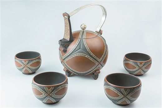 坭興陶作品《錦繡前程》作者之一的黃劍是土生土長(zhǎng)的南寧人,他的獲獎(jiǎng)作品以繡球的造型,體現(xiàn)壯族的陰刻陽(yáng)填五蛙圖騰文化。在黃劍看來(lái),正是這古老而深沉的壯族文化,才賦予茶具以靈魂,才贏得人們的喜愛。