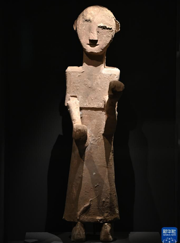 這是陜西考古博物館展出的西周晚期木俑(4月16日攝)。 新華社記者 李一博 攝