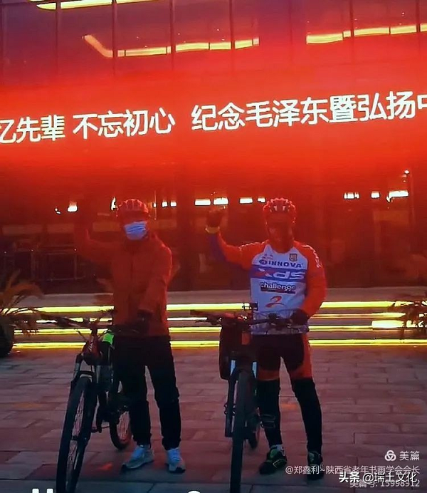 臨潼區(qū)老軍書畫學(xué)會段繼周、陳東風(fēng)倆人為參加此次書畫開幕式竟連續(xù)騎自行車行10多個小時100多公里,他們的這種執(zhí)著精神,為書畫展開幕式增添了一道亮麗的風(fēng)景線,受到開幕式現(xiàn)場同行們的一致贊揚。