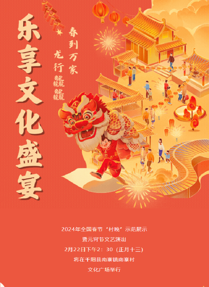 2024年全國春節(jié)“村晚”示范展示暨元宵節(jié)文藝演出正月十三在千陽舉行