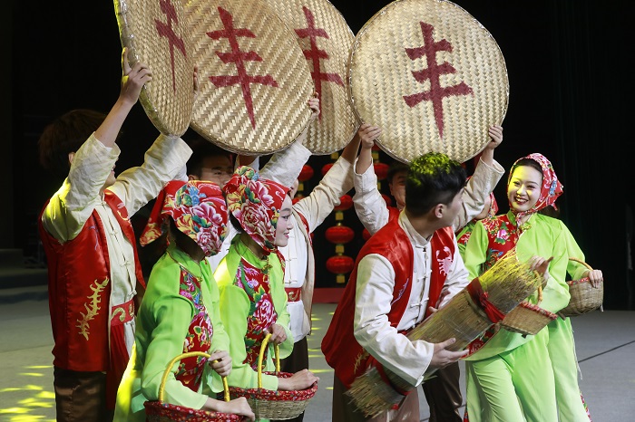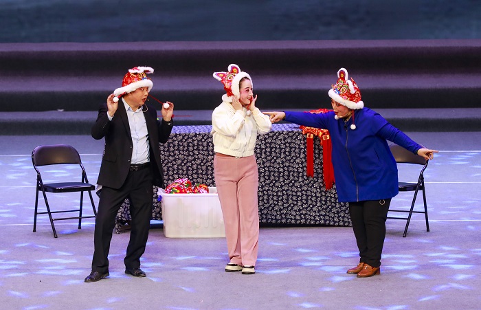 本次演出以群舞表演《龍騰盛世鬧元宵》熱鬧開場(chǎng),歌伴舞《愛在千湖等你靠岸》、戲曲表演《吼春》、小品《蘋果》等精彩紛呈的節(jié)目依次亮相,臺(tái)上演員全情投入,臺(tái)下觀眾喝彩不斷。