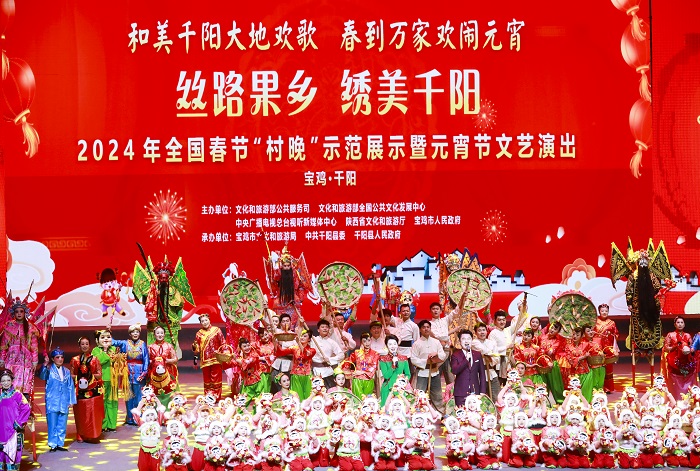 2月22日農(nóng)歷正月十三,當(dāng)天下午14:30分,由文化和旅游部公共服務(wù)司、文化和旅游部全國(guó)公共文化發(fā)展中心、中央廣播電視總臺(tái)視聽新媒體中心、中央廣播電視總臺(tái)視聽新媒體中心、陜西省文化和旅游廳、寶雞市人民政府主辦,寶雞市文化和旅游局、中共千陽(yáng)縣委、千陽(yáng)縣人民政府承辦的“絲路果鄉(xiāng)·繡美千陽(yáng) 2024年春節(jié)‘村晚’暨元宵節(jié)文藝演出”在千陽(yáng)大劇院舉行。歌唱身邊人、敘說(shuō)農(nóng)家事。這場(chǎng)充滿濃郁鄉(xiāng)村特色的文化大餐讓當(dāng)?shù)?000多名群眾和廣大網(wǎng)友在瑞雪中迎來(lái)了一年一度的元宵佳節(jié)。