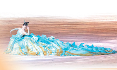 楚艷介紹,長裙整體造型采用了西式大禮服的廓形,上衣收腰、束身更便于展現(xiàn)演員的舞姿,而裙體中還點(diǎn)綴有3D復(fù)合工藝制作的亭臺樓閣和樹木紋樣。“以中國傳統(tǒng)文化為內(nèi)核,以時代創(chuàng)新精神為風(fēng)貌,傳統(tǒng)美學(xué)融入當(dāng)代時尚的方式,讓藝術(shù)呈現(xiàn)有更寬廣的可能性?!?/p>