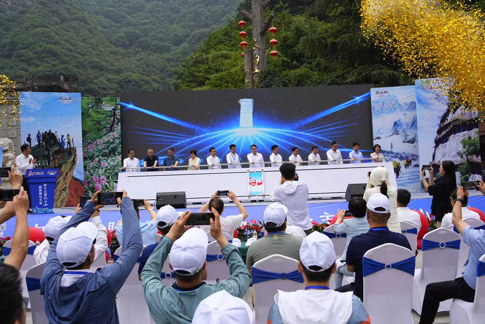 寶雞市各縣區(qū)政府分管領(lǐng)導(dǎo)、寶雞市各旅游區(qū)管委會、各縣區(qū)文化和旅游局負(fù)責(zé)人;太白山自然保護(hù)區(qū)管理局負(fù)責(zé)人、太白山旅游區(qū)管委會領(lǐng)導(dǎo)班子成員;眉縣各鎮(zhèn)街、縣級各部門、人民團(tuán)體、雙管單位主要負(fù)責(zé)人;全市4A級以上景區(qū)、寶雞市旅游協(xié)會、寶雞市旅行社協(xié)會、寶雞市自駕及房車露營協(xié)會負(fù)責(zé)人;眉縣A級以上景區(qū)負(fù)責(zé)同志,規(guī)模以上企業(yè)代表,太白山旅游區(qū)駐區(qū)企業(yè)、干部職工代表以及參加專業(yè)登山活動的運動員等共計1200余人參加了啟動儀式。