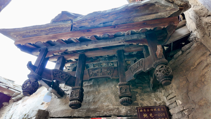 屯堡村落依山傍水,可攻可守,就地取材,以石木為構(gòu)架,石屋、石巷、石墻、石橋等等,構(gòu)成了一個石頭的王國。屯堡建筑的軍事功能突出,蘊含江南建筑文化,建筑雕刻細(xì)膩精巧,門頭雕刻最為繁富,有花窗、花板、垂花柱。