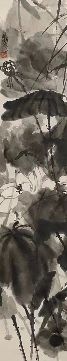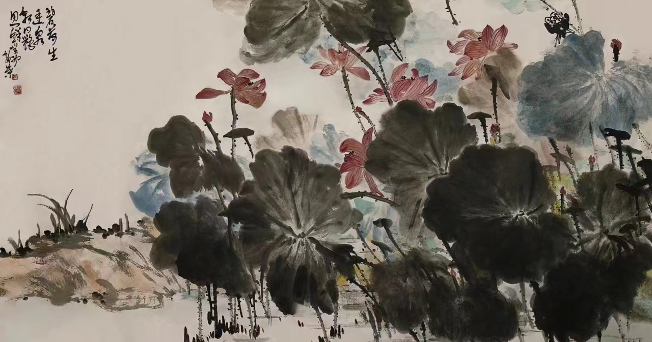 靜葉的禪意墨荷,現(xiàn)實(shí)與虛境共鳴,生活與禪意共生。就如沉潛在城市鋼鐵叢林中的小木屋,不宏偉,不器宇巍峨,僅是一泓清澈的泉水,但甘甜如飴。其用畫作凈化心靈,澡雪精神,剝離披在靈魂上的污垢。