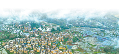 這是以哈尼族為主的各族人民利用“一山分四季,十里不同天”“山有多高,水有多高”的特殊地理氣候,發(fā)揮聰明才智和創(chuàng)造精神開墾的上百萬畝農(nóng)業(yè)生態(tài)奇觀。2013年,它被正式列入《世界遺產(chǎn)名錄》。