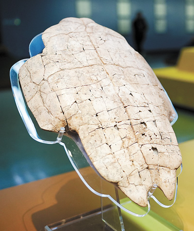 河南安陽殷墟博物館展出的刻辭甲骨。甲骨文是迄今為止中國發(fā)現(xiàn)的年代最早的成熟文字系統(tǒng),具有重要文化價值。