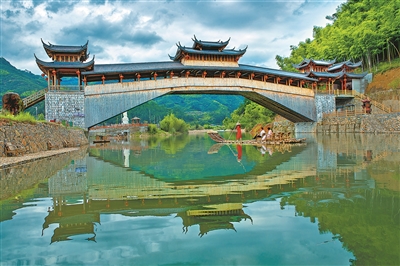 浙江麗水慶元縣如龍橋,始建于明初,是橫跨舉溪的一座南北走向木拱廊橋。