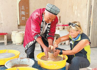 維娜·卡瑪洛塔在新疆體驗制陶工藝。朱裕華攝