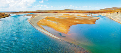 黃河流出湖水豐盈的鄂陵湖。