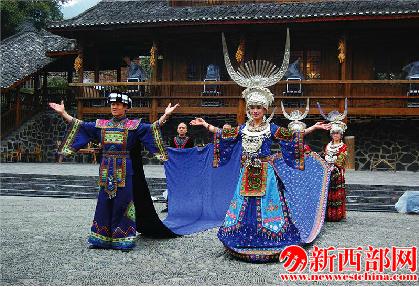 來到這樣一片桃源勝地,怎能不看看表演,不聽聽歌唱?當(dāng)音樂響起,女子舞動身姿,宏亮的歌聲便伴著窸窣作響的銀飾一起飄進(jìn)耳朵。寨子里年紀(jì)最長的老者帶著年輕的小姑娘小伙子,向慕名而來的中外游客傾情演繹最為傳統(tǒng)最為古老的苗家典調(diào)。這臺大山深處的演出竟然是無名的,我想,或許叫“西江古韻”會較為貼切。