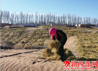 一些地段沙子流動性強,直接種梭梭,會因為大風(fēng)吹走沙子,導(dǎo)致梭梭根部懸空并隨之死亡。用麥草等農(nóng)作物秸稈,在沙丘上做成一平米見方的格子,就可以阻擋沙子流動,既保護(hù)新種的梭梭,也可以減少空氣中的沙塵含量。