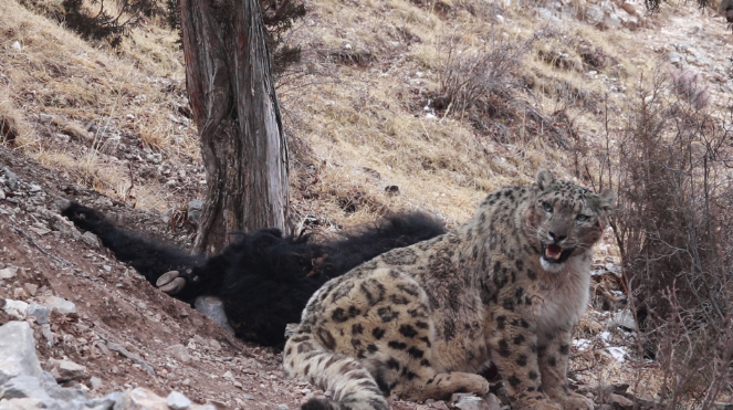 “打起來(lái)了!”李書龍突然抬高音調(diào),望遠(yuǎn)鏡將400多米外的場(chǎng)景清晰呈現(xiàn)在眼前:兩只雪豹對(duì)望數(shù)秒后,一瞬間對(duì)向優(yōu)雅地起跳。
