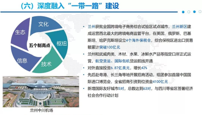 報告指出,為推進城鄉(xiāng)區(qū)域協(xié)調(diào)發(fā)展,打造新的增長點增長極增長帶,謀劃培育區(qū)域發(fā)展新板塊新動能,2019年,甘肅省全面啟動榆中生態(tài)創(chuàng)新城規(guī)劃,統(tǒng)籌推進蘭州大學“雙一流”和蘭州副中心建設,打造新興經(jīng)濟增長極。