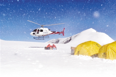 10月19日,三江源冰川科學考察在青海黃河源地區(qū)啟動。20日,直升機將首批科考隊員和物資運送至阿尼瑪卿雪山主峰冰面。徐柏青攝(新華社發(fā))