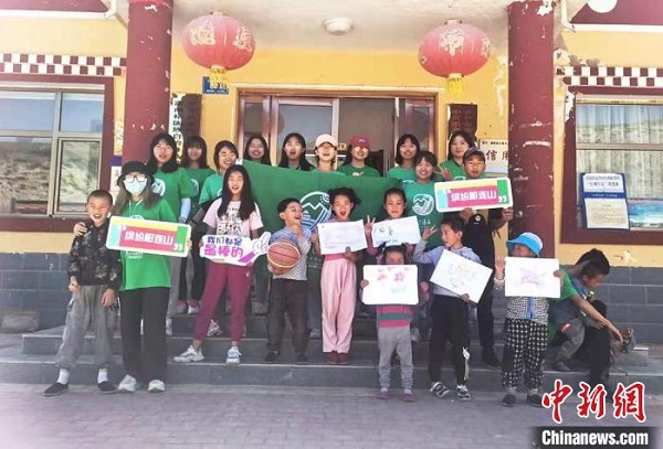 2021年暑假,蘭州財(cái)經(jīng)大學(xué)志愿者在張掖市肅南縣馬蹄鄉(xiāng)為孩子們開(kāi)展環(huán)境教育課程。(資料圖) 張曜麒 攝