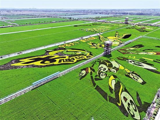 以地作布、用稻作畫,一幅“塞上江南、魚米之鄉(xiāng)”的優(yōu)美畫卷緩緩展開。 記者 李濤 攝