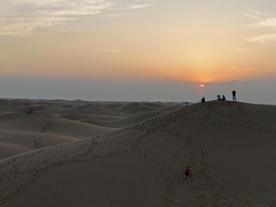 遠(yuǎn)遠(yuǎn)望去,越野車(chē)在連綿起伏的沙丘之間陡然攀升又疾馳而下,“沙漠沖浪”的失重感引發(fā)陣陣尖叫;載著游客的駱駝蜿蜒成隊(duì),伴著聲聲駝鈴在大漠之中悠然前行;手抓滑沙板,游客從百米沙坡之巔俯沖而下……2007年,沙坡頭景區(qū)成功入選首批國(guó)家5A級(jí)旅游景區(qū),2015年景區(qū)游客人數(shù)首次突破100萬(wàn)人次。