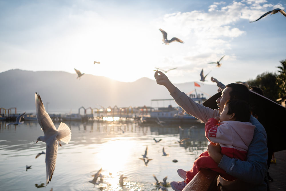 ??市民在云南滇池畔投喂紅嘴鷗(2022年10月20日攝)。新華社記者 王冠森 攝