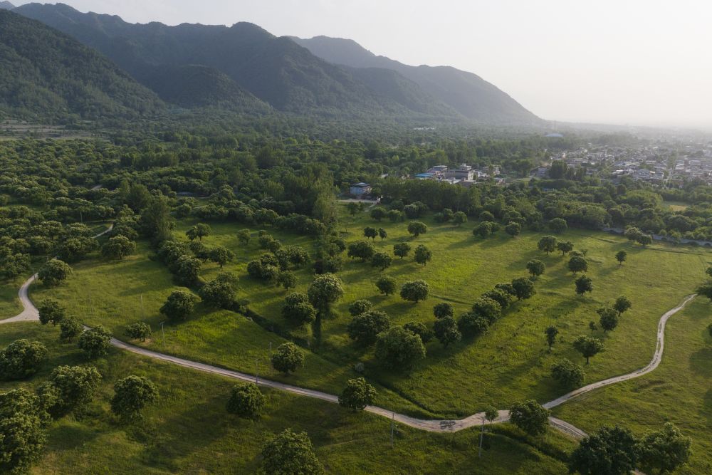 ??西安市長安區(qū)子午街道南豆角村的板栗古樹群(2024年5月15日攝,無人機(jī)照片)。新華社記者 邵瑞 攝