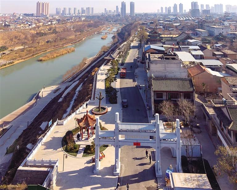 仿古建筑、古城記憶燈飾、雕塑造景……在三原縣清河南岸濱河文化街,背街小巷大變樣,煙火氣與時尚范兒并存。