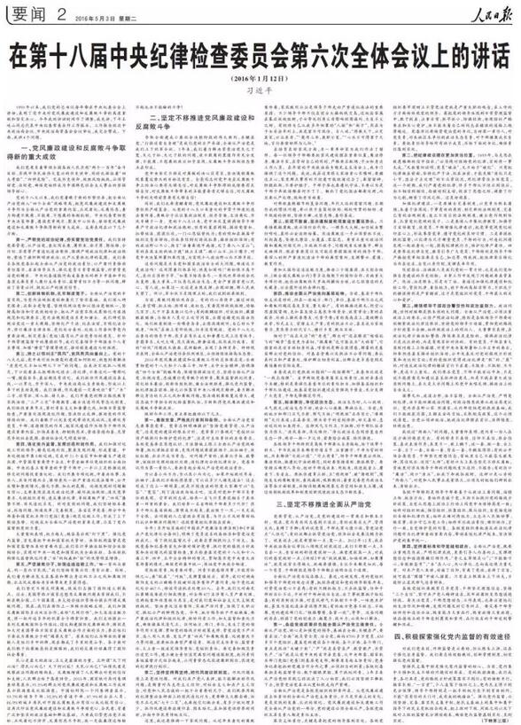 【學(xué)習(xí)大國按】5月3日,“五一”小長假后第一個工作日,習(xí)近平的又一篇講話全文公開發(fā)表——《在第十八屆中央紀(jì)律檢查委員會第六次全體會議上的講話》,看文章標(biāo)題就知道這篇講話的分量。這是2016年1月12日在中央紀(jì)委全會上講的,全文近1.5萬字。