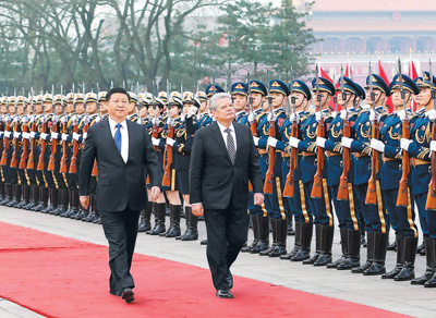 習近平歡迎高克首次對中國進行國事訪問。習近平指出,當前中德交流合作緊密程度超過歷史任何時期。在雙方共同努力下,中德關系發(fā)展水平正在邁向更高層次,政治互信持續(xù)提升,務實合作不斷加深,人文交流更加廣泛,在國際和地區(qū)問題上溝通協(xié)調(diào)更加頻繁。